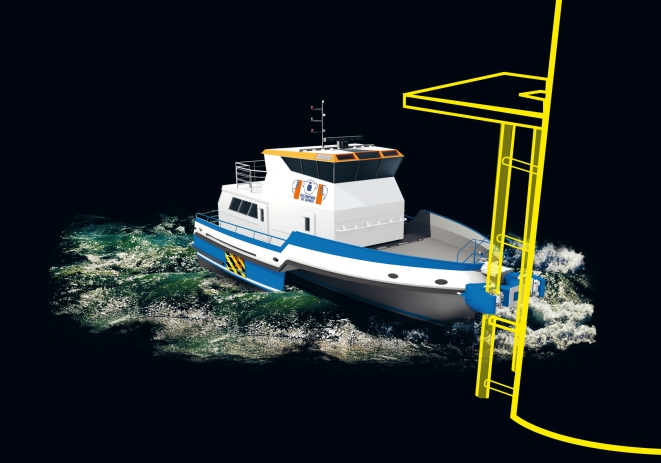 The innovative Mobimar 18 Wind has undergone extensive model tests at the VTT Technical Research Centre of Finland. The vessel measures 18 m in length, the beam is 8,5 m and the work deck is much bigger than the deck of a monohull. The large deck space can be used for transport of maintenance equipment and as a workspace for work that cannot be carried out at the wind turbines. Mobimar 18 Wind is designed and built by Mobimar Ltd. in Turku, Finland and will be classed by Bureau Veritas, DNV or equivalent.