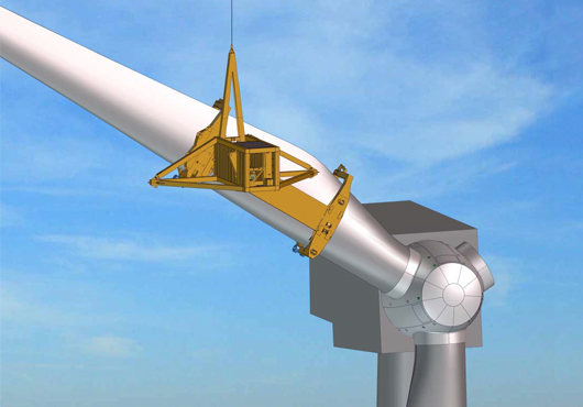 The Blade Dragon is a remote controlled yoke that handles blades in wind speeds up to 12 m/s for installation on the hub in all positions.