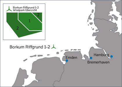 When completed Borkum Riffgrund 1 will consist of 77 3.6 MW wind turbines from Siemens Wind Power. The wind farm will be able to supply CO2-free power equivalent to the annual electricity consumption of more than 285,000 households.