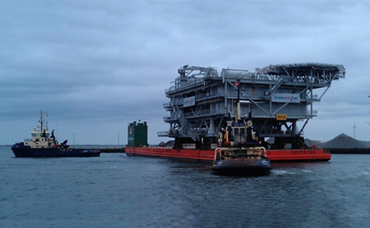 The substation left Aalborg on 5th April and the day after it arrived at its final position by Anholt.