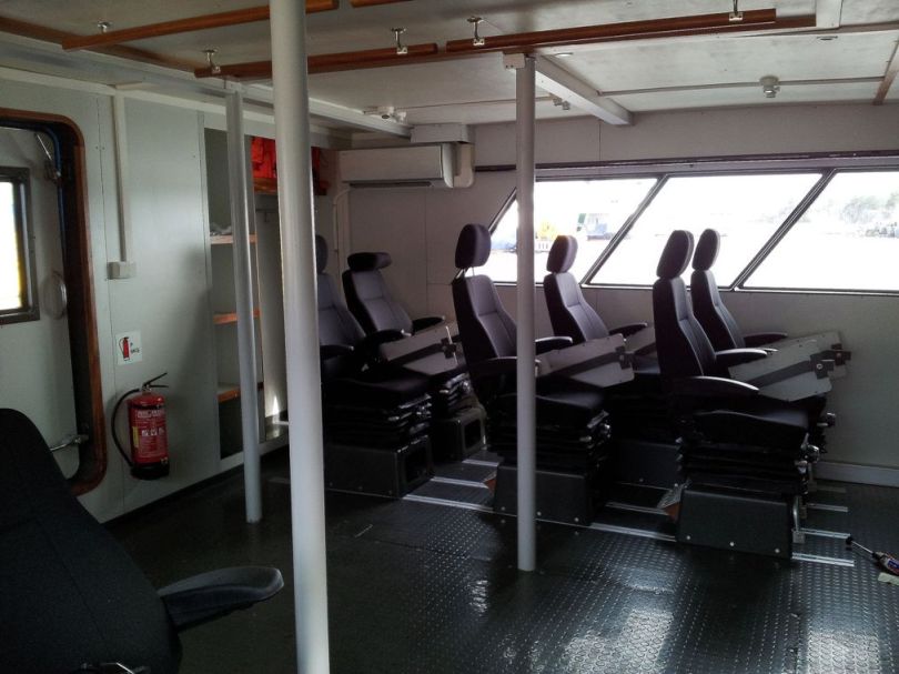 small water resistance, an even and significantly wider work deck area compared with a mono hull vessel of same length, very soft and good sea-keeping properties even in harsh sea conditions. Because of these benefits the vessel is also very suitable for oil recovery, sea surveys and transportation of passengers.