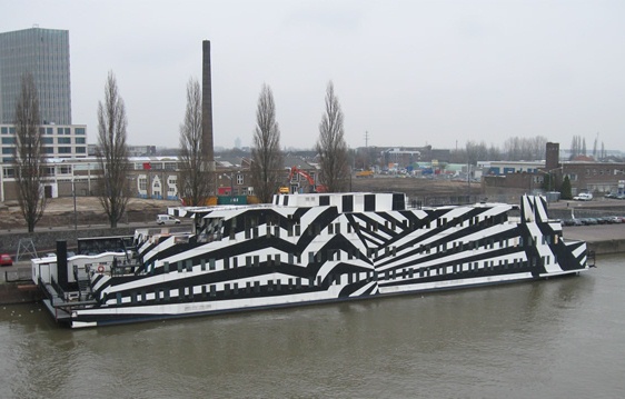 The non-propelled vessel will be called “Sans Vitesse”. The barge that was built in 2003 and has been maintained in very good condition by the previous owners, a municipality in The Netherlands. Despite this the vessel will be upgraded to 88 cabins with en suite bathrooms and showers. The design will make the vessel especially suited to be used as a base for maintenance and construction in the offshore wind industry and other near shore construction projects. Accommodating the engineers as close to the work sight as possible will save the commute to and from the port from hotels, making up for substantial savings. The vessel now is painted in dazzle design. Whether these colours remain will be up to the charterers.