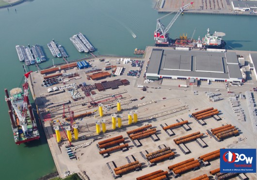 With a experienced team of professionals and the good relationships which are build up in the last 2,5 years with companies as Seaway Heavy Lifting, Ballast Nedam, MPI Ltd and Van Oord, the shareholders of BOW terminal strongly believe that it can play an active role as hub for the Round three offshore wind farms, beside other Energy – and heavy lift related projects around the Northsea in the coming period. The storage capacity of 200.000m2 open storage (15 tons per m2 bearing capacity) and a storage capacity of 60.000m2 under roof, all kind of offshore related components can be stored at the premises of BOW terminal.