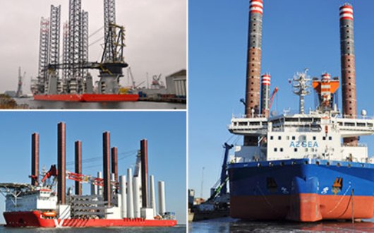 Four of the largest wind turbine installation vessels in the world are currently positioned in the Port of Esbjerg, where Blue Water Shipping is acting as agent and handling stevedore assignments.
