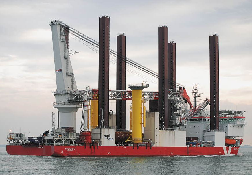 The Teesside Offshore Windfarm Project, being developed by EDF Energy Renewables, requires the MPI Adventure to transport the 27 turbines, in particular the towers, nacelles and blades, out to sea, some 1.5km off the shore of Redcar.  This is expected to complete in early spring.