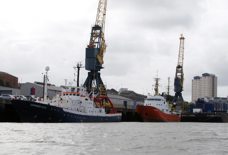 Some of the largest wind turbine installation vessels docked in Sunderland like MPI Adventure and MPI Discovery.