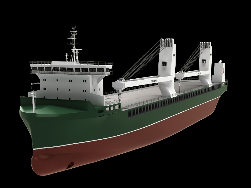 The heavy lifter is planned to have two cranes, the lifting capacity of which can be selected to suit the customer’s needs. A total of 1,600 tons is possible, which means experience with the transshipment of heavy goods is required as far as operation of the ship is concerned. With its diesel engine, the ship can reach a speed of 16 knots.