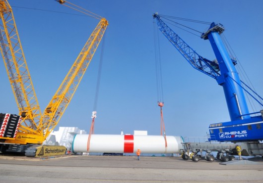 The wind power project sector is now another important source of business for the port logistics company. Among other things, the port loaded 30 monopiles and 180 tower segments last year, transhipped rotor blades for onshore wind parks and provided support services with maritime cable logistics for Offshore Marine Management GmbH; this included handling 280 tonnes of heavy communications cables for linking up the HelWin 1 offshore transformer platform. Cuxport also signed a reservation agreement with the energy giant E.ON to make space available. The Cuxport terminal will serve as the base port for the installation phase of the Amrunbank offshore wind park. And the company was able to win other projects in this sector for 2013.