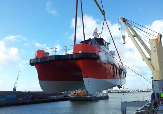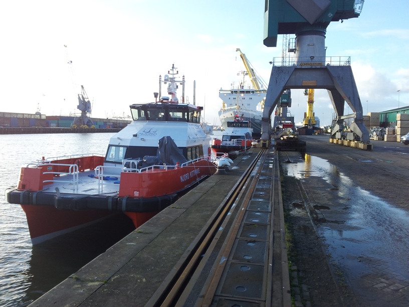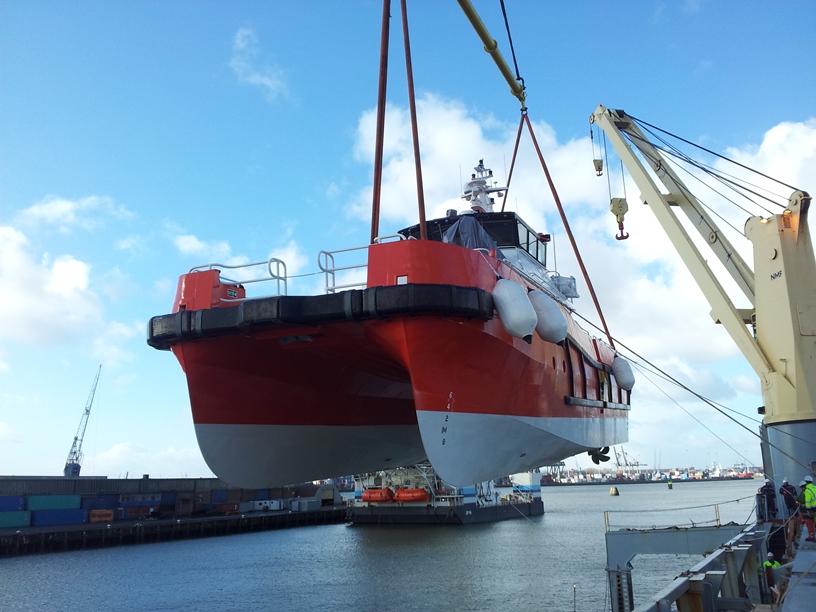 Offshore windfarm crew transfer vessels Njord Avocet and Njord Kittiwake arrived to Rotterdam two days ago from Singapore. The vessels were shipped together on the deck of a heavy lift vessel MV Wiebke.