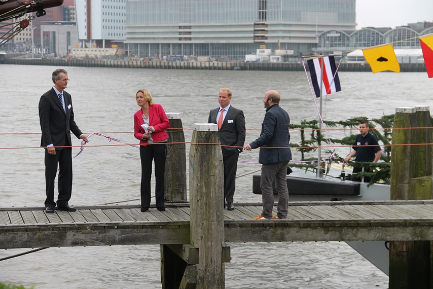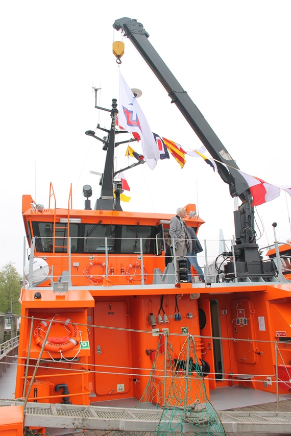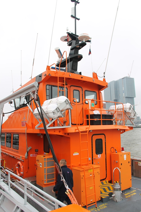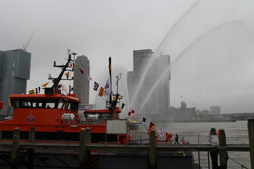 The vessel had been built in 1999Singapore for work in Hong Kong as a rescue/ recovery vessel for a Hong Kong ferry company, but as Dhr. Hudig quipped “it was never used and had remained in the garage until now”. After hearing about the vessel it was shipped over to Rotterdam by a heavy lift vessel in February.