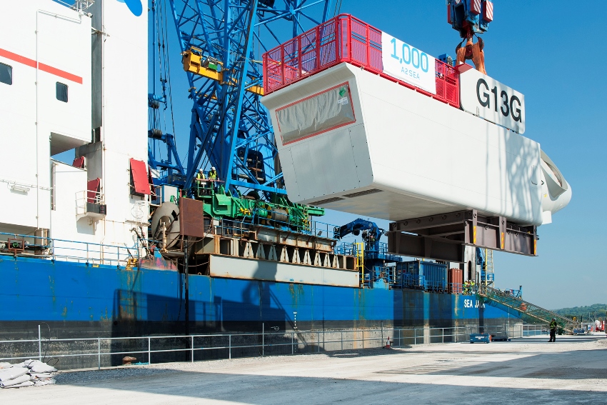 Turbine no. 1,000 was installed by SEA JACK at the Gwynt y Môr Offshore Wind Farm in the Irish Sea.