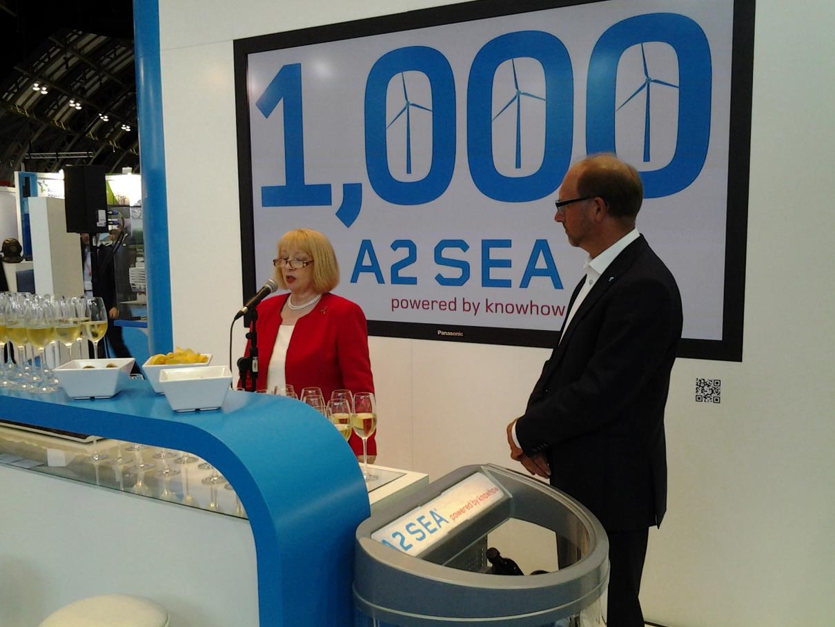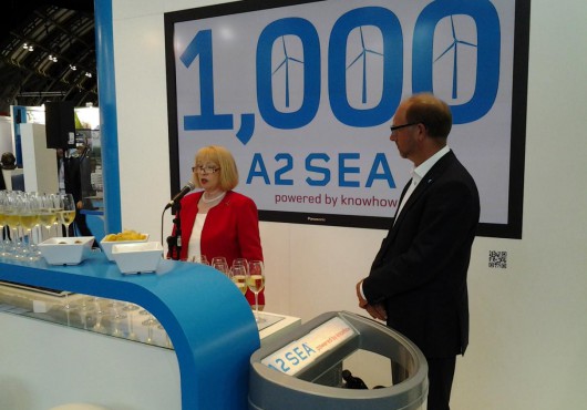 Today at the RenewableUK Offshore Wind exhibition in Manchester, A2SEA announced that the company had just installed turbine no. 1,000 in its 12 year history.