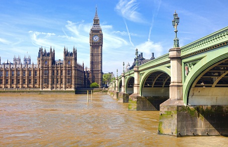 London westminster houses of parliament and bridge on river tham