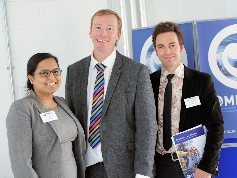 The workshop was organised by Cornwall Marine Network (CMN) and University of Exeter as part of the EU project MERiFIC. It saw the UK launch of a Procurement Code of Practice guide for small businesses, published by CMN and French project partners Technôpole Brest-Iroise. The MERiFIC project aims to stimulate growth in the sector in the peripheral regions of Cornwall and the Isles of Scilly in the UK and Finistère in France.
