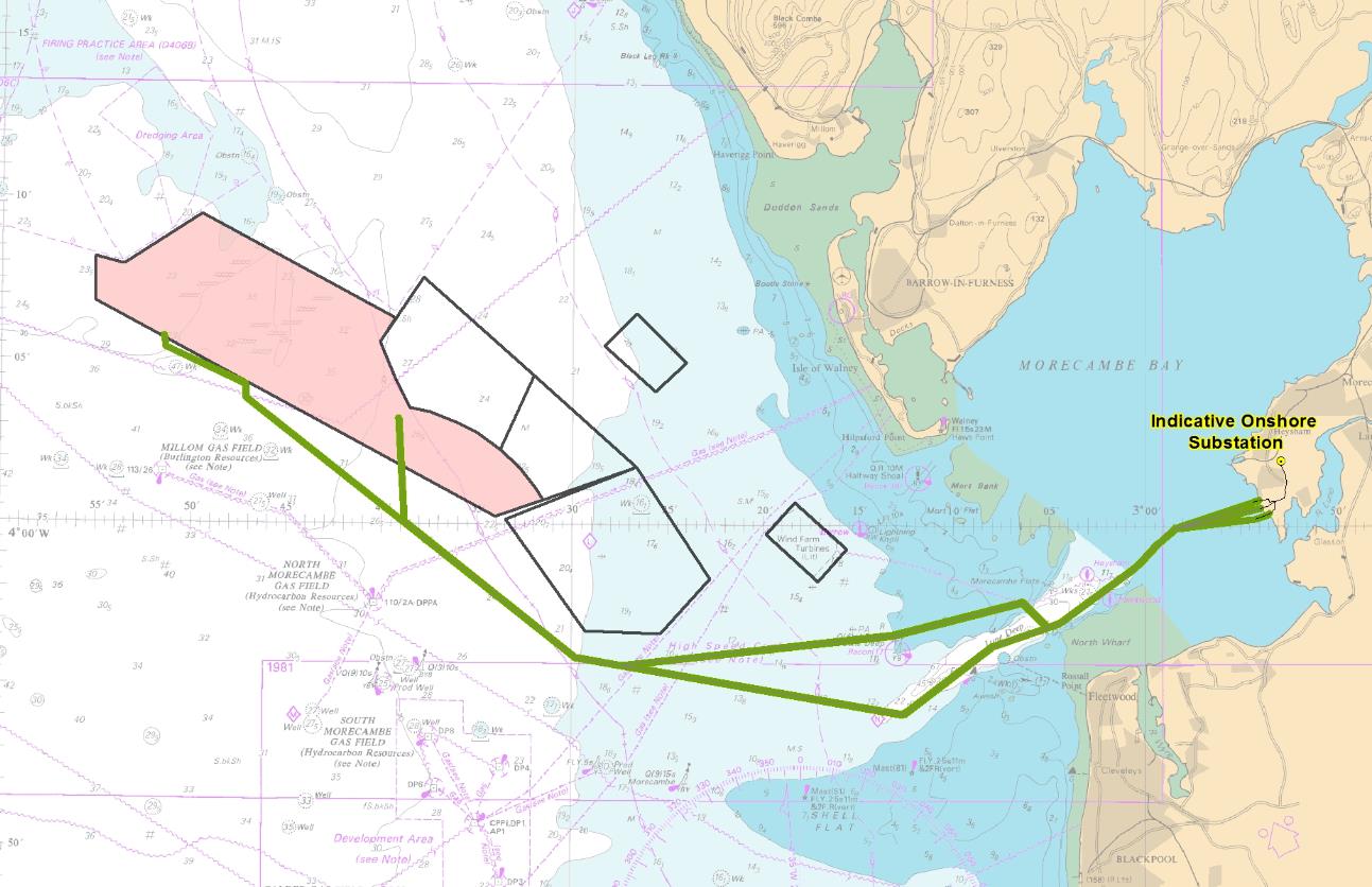 The project development site is located in the Irish Sea, around 19 km WSW of the Walney Island coast in Cumbria, 26 km SW from the Millom coast in Cumbria, 35 km NW from the Fleetwood and Blackpool coast, and 31 km SE from the Isle of Man.