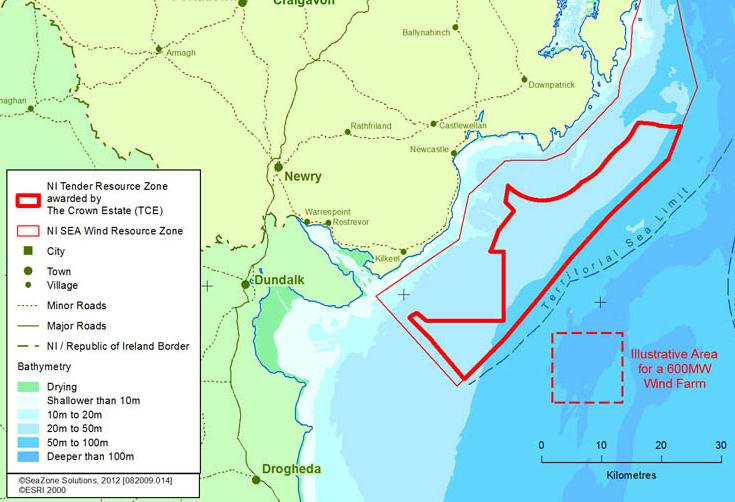 The proposed 600MW wind farm will be located within the Wind Resource Zone in the Irish Sea and will be at least 8km off the County Down coast.