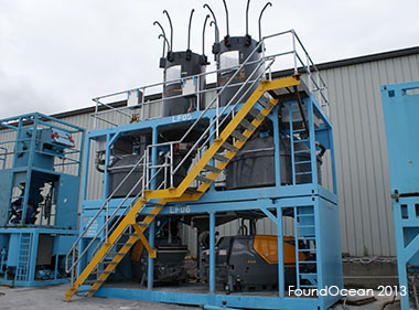 FoundOcean has invested nearly £1m in the design and construction of its new mixer: Two are already in use at the 108-turbine West of Duddon Sands offshore wind farm, and a third is being mobilised to Energy Park Fife in the coming weeks, to grout the foundations for Samsung’s record-breaking 7MW turbine. Both projects are using BASF’s MasterFlow 9500 UHS grout. The third Super Pan is the latest mixer produced by FoundOcean and is the 40th in its expanding line of grout mixing equipment.