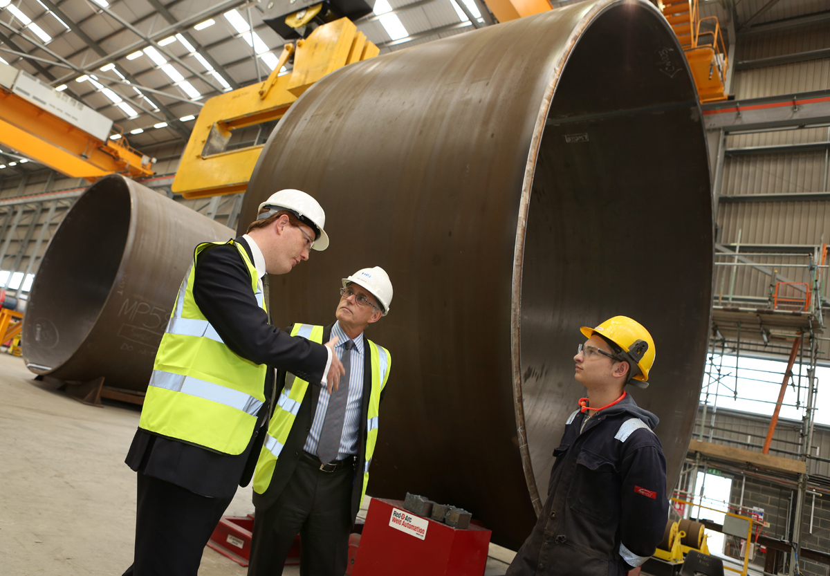 The facility has the ability to roll and weld large diameter tubulars and the construction of foundations including monopiles, tripods, jackets and transition pieces.