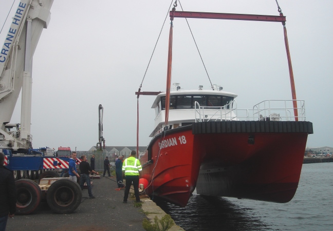 This new 19 metre vessel is the first of a new design which is intended for the upcoming Round 3 offshore sites for the Renewable Offshore Industry in the U.K.