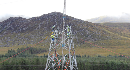 The erection of the 267th tower marks the half way point in the project with the final bolts being tightened on the tower located at the foot of the historic Corrieyairack Pass. Excellent progress has also been made on three rationalisation schemes which will result in over 100km of overhead lines being removed.