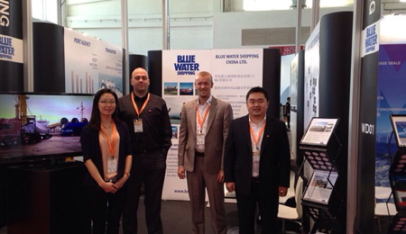 During the three-day exhibition, Carol Liu and Roy Zhai from China, Michael Rud from Denmark and Bjarke Nielsen from the office in Singapore represented Blue Water at the company’s own booth. Carol Liu was asked, by the Danish Export Association, to do a daily presentation of some views on the challenging task and future of transports for the wind industry – an exciting topic in today’s modern transport industry.