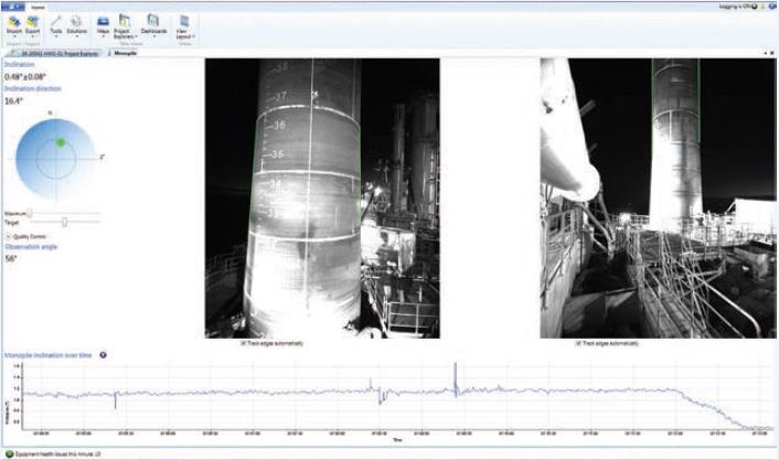 Two high-resolution cameras are placed at an angle pointing towards the monopile, thus measuring the inclination in two directions. To compensate for vessel movement the cameras are connected to Inertial Motion Units (IMUs). The camera images and IMU data are synchronised using Fugro’s StarPort technology.