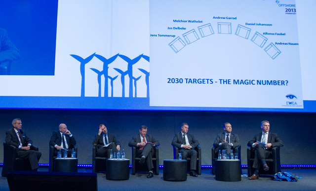 Speakers in the panel at EWEA OFFSHORE 2013 were the secretaries of state for energy from Sweden and Belgium, the European Commission Director-General for Climate Action, the CEO of the Vestas-MHI Offshore Joint Venture, and the Senior Vice President of Alstom Wind.