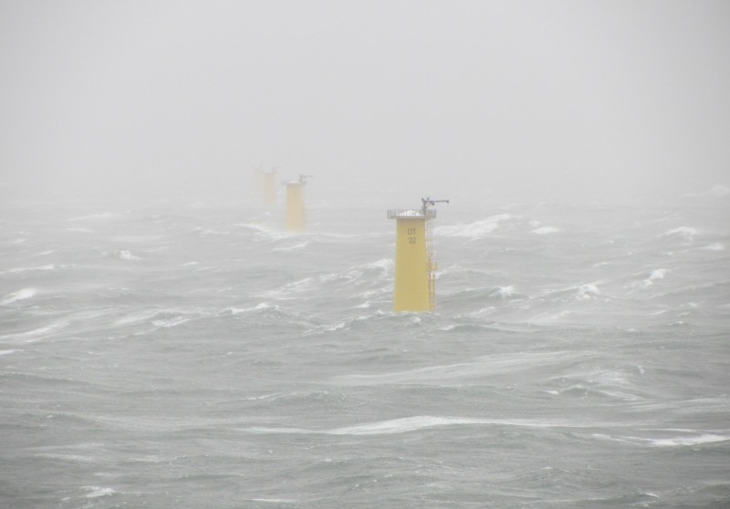 Wind measurements of 44.3 m/s (160km/h) were recorded on board the foundation installation vessel – the Seafox 5, at 2:10 pm on October 29, according to Vattenfall’s blog. A wave buoy that measures wave action has recorded a maximum wave of 9.4m.