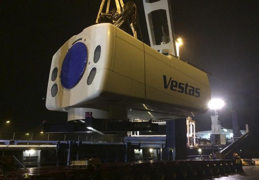 Blue Water completed the transport project in the beginning of December, when the vessels “Eendracht” and “Meri” delivered the nacelle and the more than 80 m long blades. All transports went according to plan, and Vestas expects that the world’s largest wind turbine is installed at the test center in Oesterild in the Northern part of Denmark around the beginning of 2014.