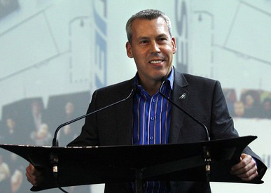 Sean Durfy, president and chief executive officer of Westjet, smiles after reporting first quarter profits at the company's annual general meeting in Calgary