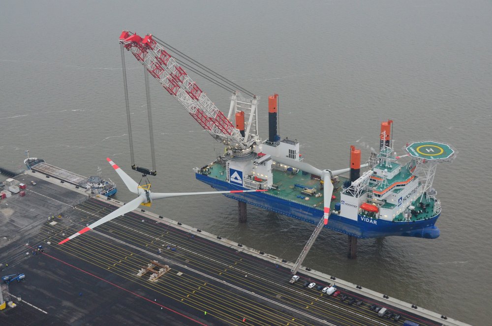 Crane vessel VIDAR has started loading the first AREVA rotor stars for the offshore wind farm Global Tech I yesterday.