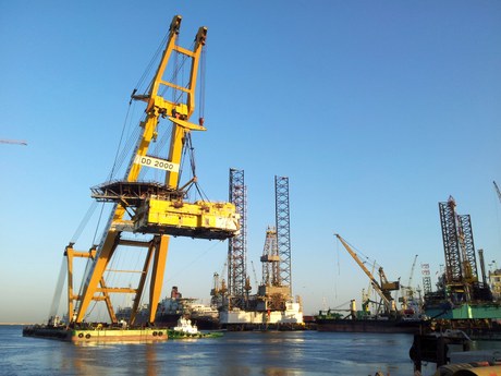 The Dolwin Beta wind platform is well under construction at subcontractor Drydocks World in Dubai, as the 500-ton living quarters were lifted in place by a floating crane.