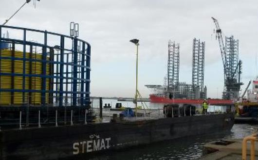 Most recently, the barge Stemat 87 arrived at the Danish port of Esbjerg. The barge carried cables from Norway, where they are being manufactured by Parker Scanrope. In this first operation, the cables will be transported to the cable installation vessel Olympic Taurus, which awaits mobilisation.