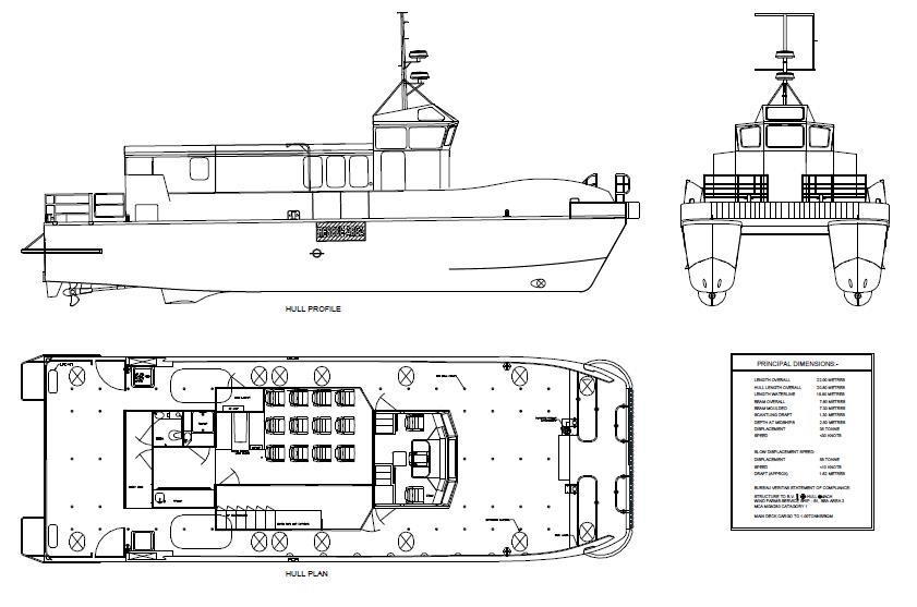 CTruk’s hard-won experience and dedication to incorporating client feedback is serving the company’s in-house design team well. New features on this vessel include a protected controllable pitch propeller (CPP) system which will give optimal bollard pull and service speeds, significantly increasing the already renowned fuel efficiency of CTruk’s lighter weight composite catamarans and yet still allowing the boat to take the ground and dry out at low water. Various engine options are available and the inclusion of bow thrusters will give greater manoeuvrability.