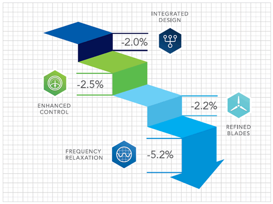 Through the combination of four technologies (integrated design, relaxation of frequency constraints, enhanced control systems and slender, faster blades) aggregate cost savings of over €1Bn in NPV terms could be achieved over the next decade.