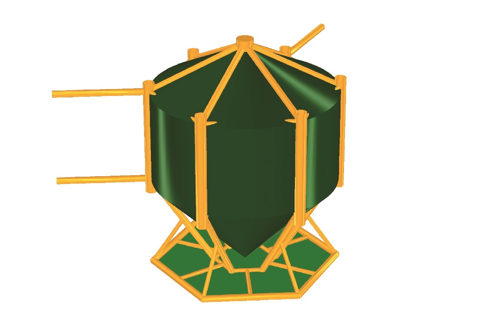 Although the combination of characteristics may not make any sense, the new foundation is a serious planned new product of the MOG. The “TEXBASE” called structure has been designed under the same strategy as the first structure of the MOG, the HEXABASE. A lightweight design using spiral- and longitudinally welded steel pipes will be ballasted by six concentrically arranged sand ballast tanks with a maximum volume of about 3,000 tons of sand.