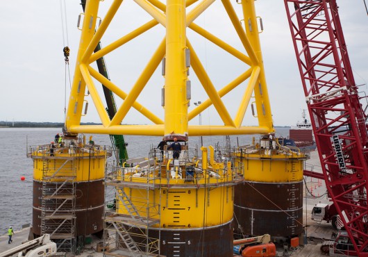 Suction Bucket Jacket Foundation Installed at Borkum Riffgrund 1 (Gallery)