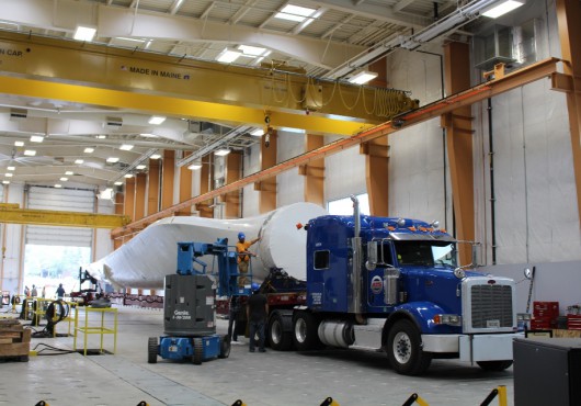 A leading wind turbine blade manufacturer delivered a 56 meter blade to the University of Maine’s Advanced Structures and Composites Center last week.