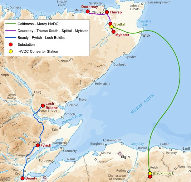 A key enabler for this is the installation of a subsea HVDC cable, capable of carrying up to 1,200 MW of electricity between Caithness and Moray, equivalent to the electricity needs of about 2,000,000 Scottish residents.