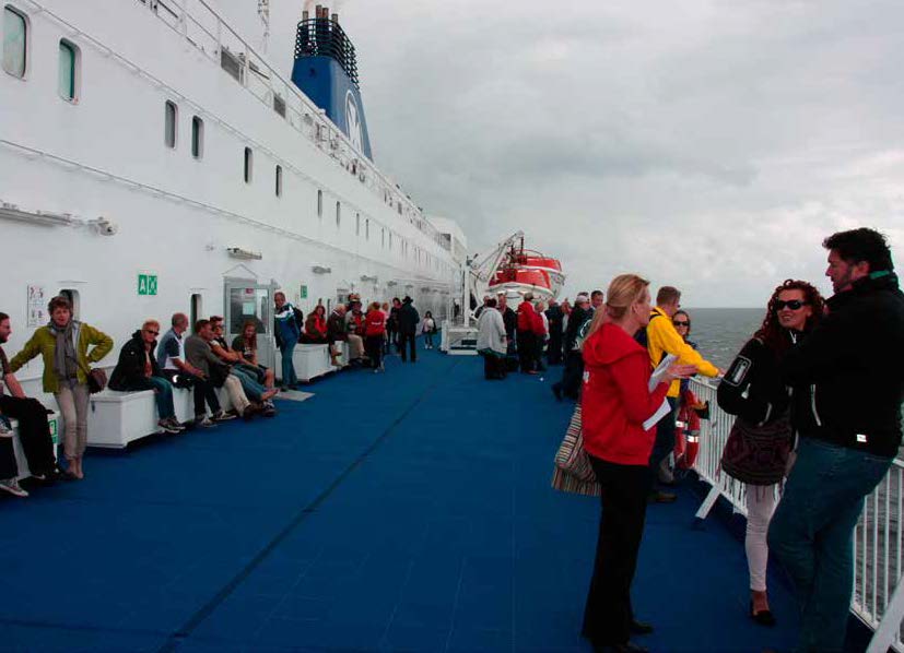 Offshore WIND and other members of the press were also present. While we all waited in the cruise terminal for the sign to board we had a good view on the other visitors. One could see people of all ages, some of them alone and some with their whole family. During the trip we would discover that these people had come along for many different reasons; local residents that came out of curiosity to see, close to, what the wind farm would look like, some who have a profound interest in renewables, some with technical engineering interests, but also some who’s partner worked on a wind farm and who now finally had the chance actually to see what their partner has been or is doing on a day to day basis. And of course some of them were there to emphasise their opposition to offshore wind.