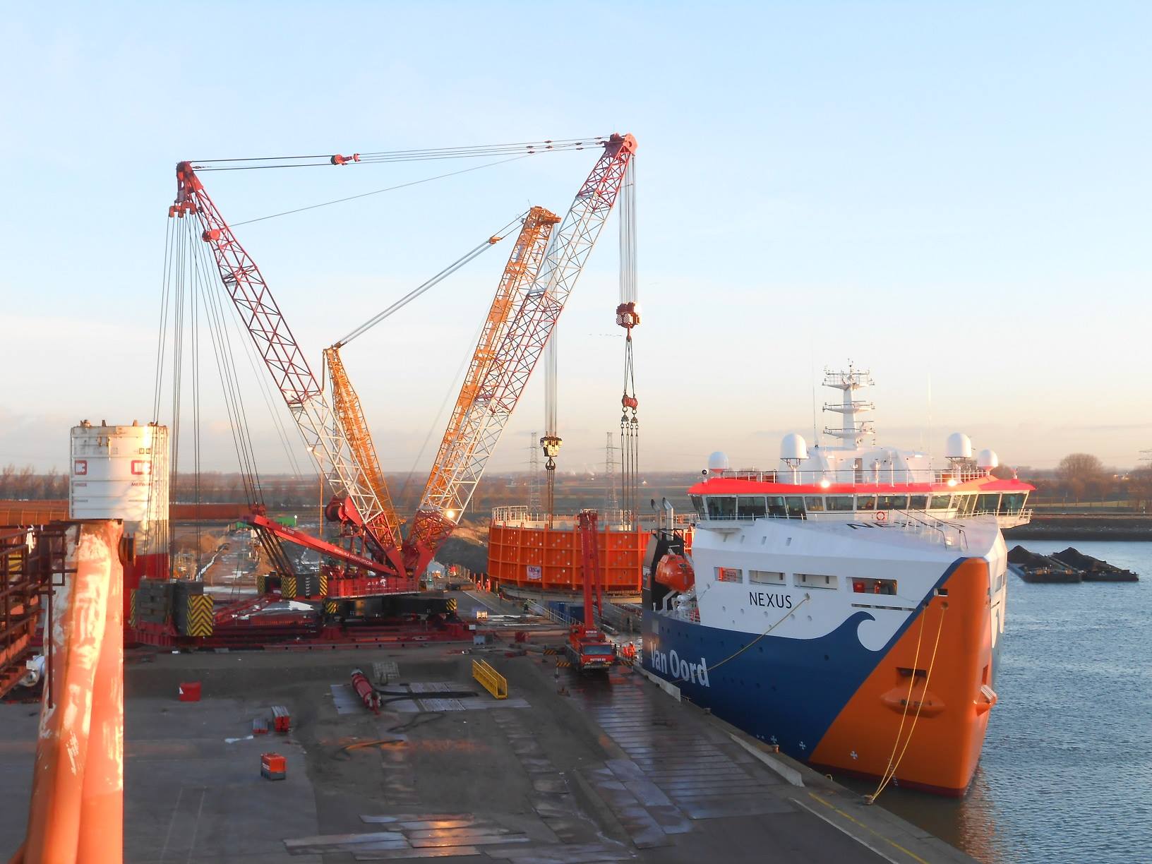 After a long windy period, BOW Terminal managed to load equipment onto Van Oord’s brand new DP2 Cable Layer “Nexus” yesterday.