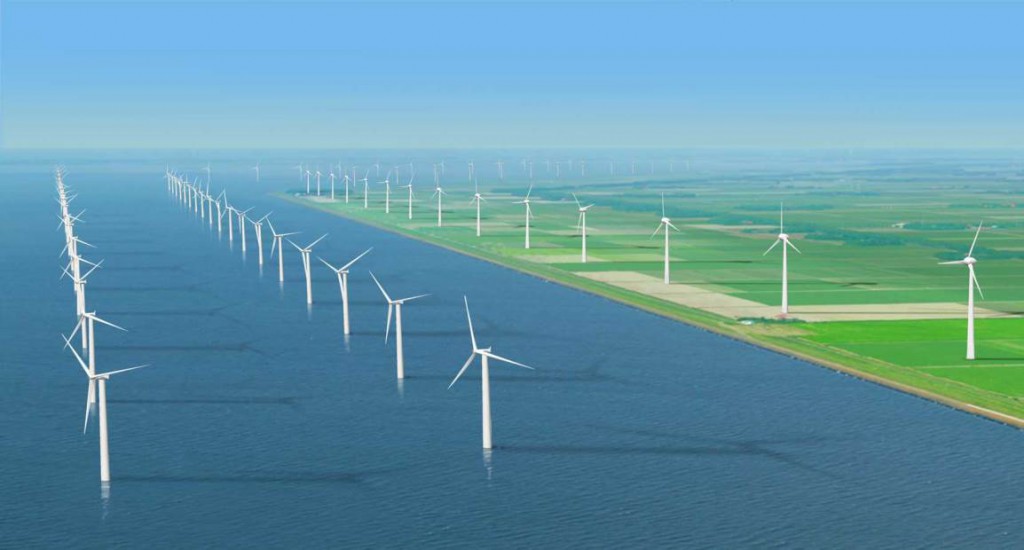 Siemens plans to erect 48 Siemens 3MW turbines in three rows 500 metres and 1100 metres from the dikes of the Noordoostpolder.