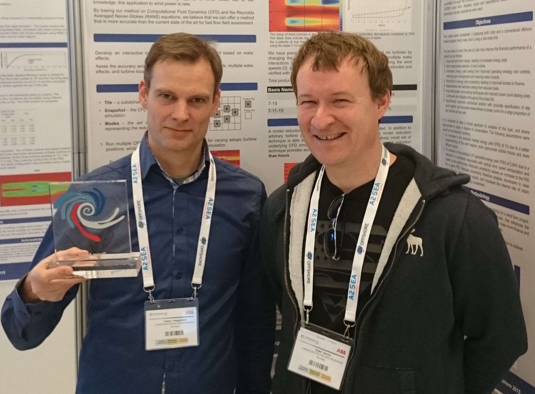 The poster “A fast reduced order method for assessment of wind farm layouts” competed against almost forty other contributions. Co-authors are Chad Jarvis, CMR, and Marwan Khalil, GexCon.
