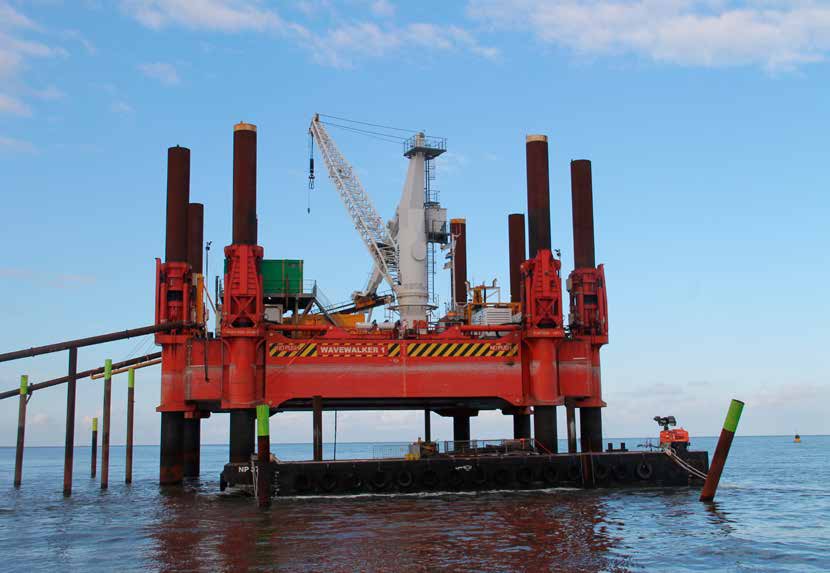 Due to strong currents and very shallow water depths at this location a very special vessel would be required to carry out the horizontal drilling operations for the two ducts separated by 25 metres. The EPC contractor responsible for the Gemini project is the Dutch family-owned marine business, Van Oord. In partnership with Fugro Seacore, this company also has a 50% share of a remarkable vessel, the jack-up barge WaveWalker 1.