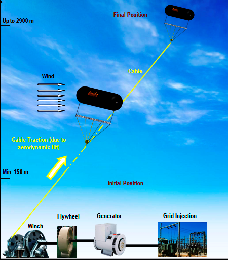 “As the system operates well over 200 metres above ground, any visual pollution is minimal,” adds project coordinator Nuno Fernandes from high-tech R&D company Omnidea in Portugal. “Also, construction costs are low as there is no need for giant steel and concrete towers.”
