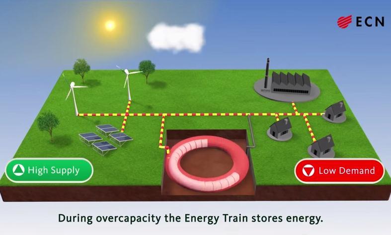 This Energy Train can compensate for peaks and troughs in the supply and demand of wind and solar energy at one tenth of the usual costs.