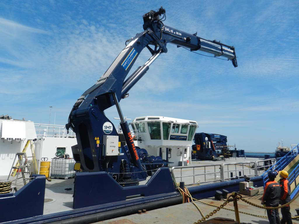 With a displacement of more than 600 tonnes, 36.5 metre length, 13.5 metre beam and total installed power of 2300 kW, the ‘London Titan’ has two identical folding cranes which are capable of lifting loads of up to 25 tonnes.