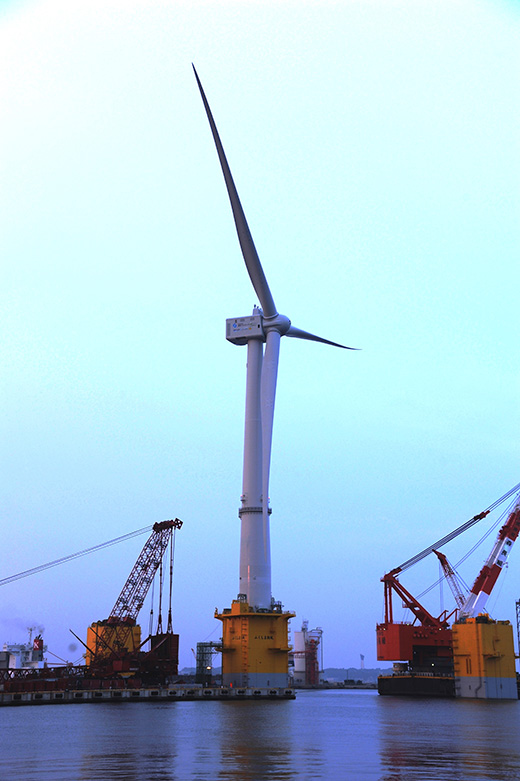 Assembly works of the 7MW oil pressure drive-type wind turbine on the three-column semi-sub floater at Onahama port has been completed and delivery of the floater to testing area is going to start shortly as part of the second phase of the Fukushima Experimental Offshore Floating Wind Farm Project.