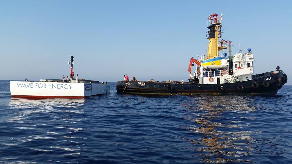 On August 7, the first Italian 1:1 scale device for the production of electricity from sea waves was moored 800 m from the coast of Pantelleria, Italy.