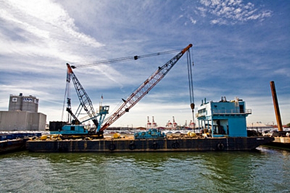 Pennsylvania-based company Donjon has provided a large crane barge, the Farrell 256, along with the support from its shipyard as the team prepared the barge and other equipment for the work.